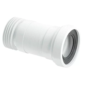 White polypropylene pan connector. Enables easy installation of WC pans in awkward situations.